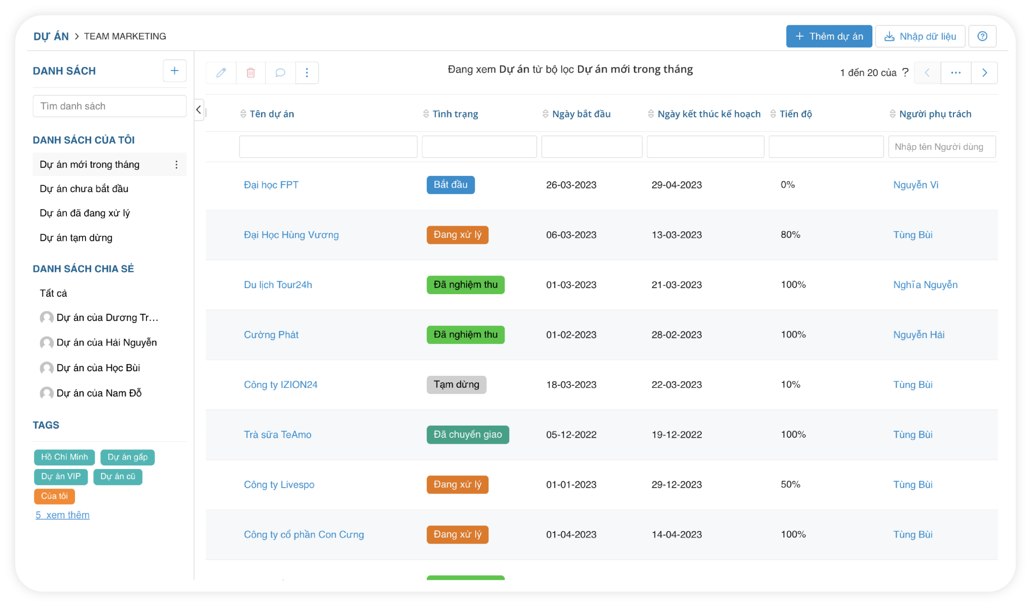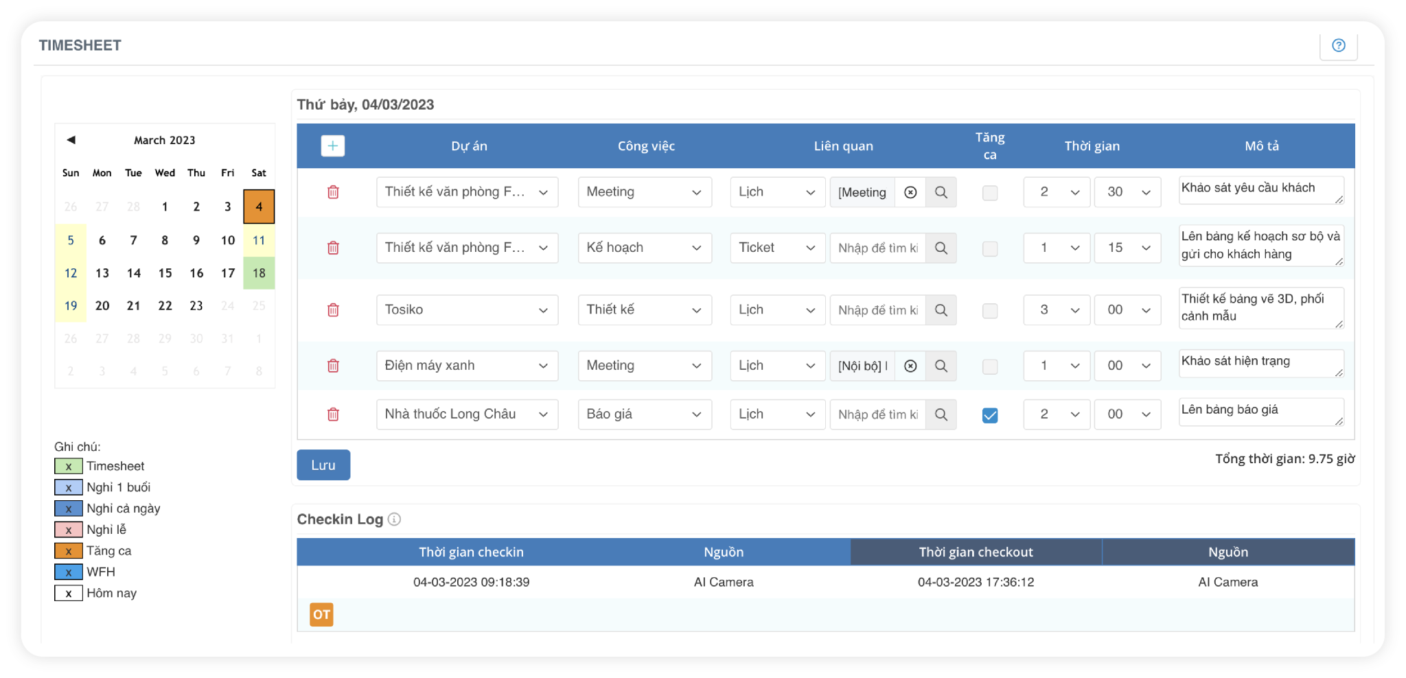Nhân viên có thể dễ dàng tạo lịch làm việc theo ngày, tuần, tháng cho bản thân. Đặc biệt, hệ thống có thể theo dõi tất cả các loại dữ liệu có kiểu ngày tháng trên màn hình Lịch của tôi ví dụ như ngày bắt đầu dự án, ngày ký kết hợp đồng, ngày đặt hàng, ngày sinh nhật liên hệ, ngày thành lập công ty …